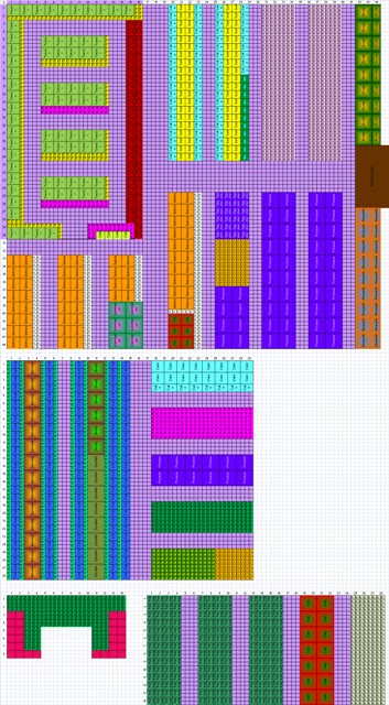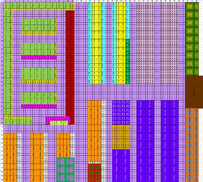 The (coming soon) high tunnel is in there, upper left corner, and the chicken coop is also planned out for its new location, so the little feathered raptors can help me with pest control. I plan on what to plant where, and to some extend when by using this spreadsheet. I know the space requirements of each plant and have a little template of them which I copy however many times I want to plant a certain plant and then I play tetris.